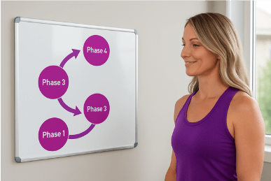 Always know what’s coming next. Behind everything we do is my signature framework: a phased process that guides you from setup to strength to fat loss to maintenance.