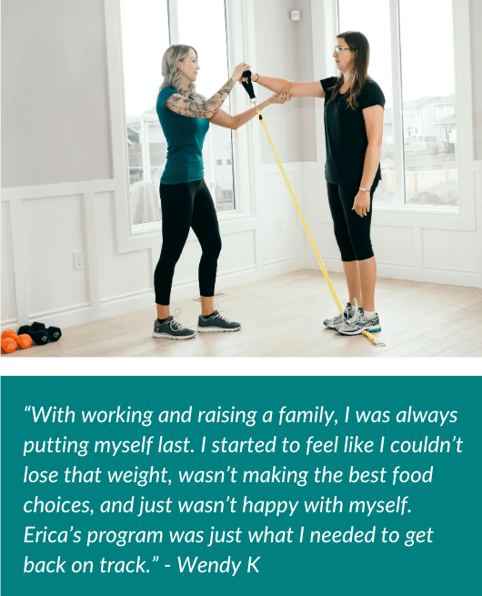 “Erica’s support was invaluable — she made it do-able to make the changes I needed. By the end, it was so easy to carry on with all the new healthy habits I’d formed. I’ve maintained my goal weight and I still feel great every day. I would highly recommend her to anyone who wants to make a change but doesn’t know where to start.” - Wendy K.